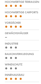 Carports, Terrassen und Vordächer. Für Wintergärten empfehlen wir 32 mm