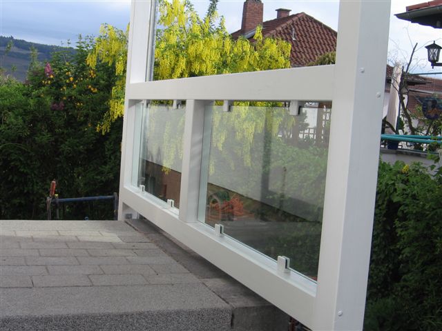 Geländer: teilweise PLEXIGLAS und Holz, und teilweise nur Holz