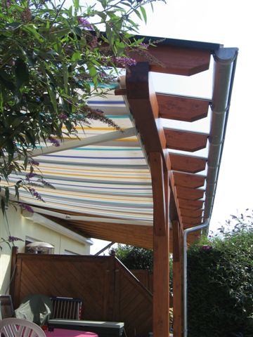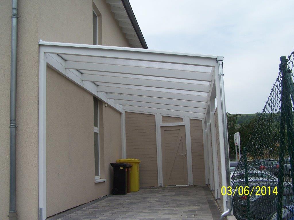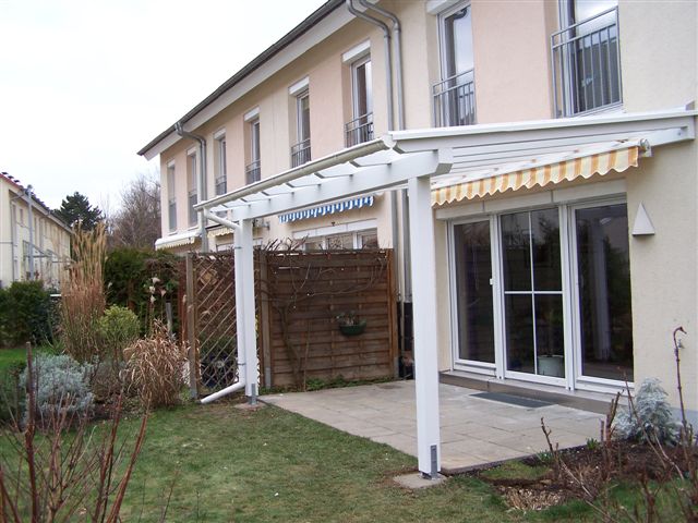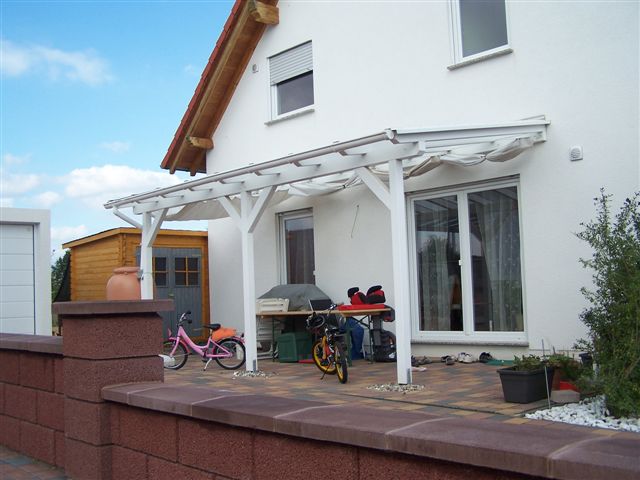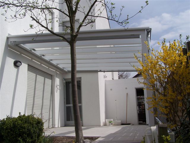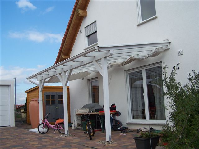 Eindeckung mit VSG, Seitenteil weiß, Unterdachmarkise Sottezza,