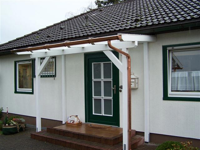Eindeckung mit VSG, weiß, Zinkdachrinne, Fensterbankprofil an Seitensparren