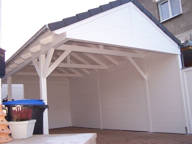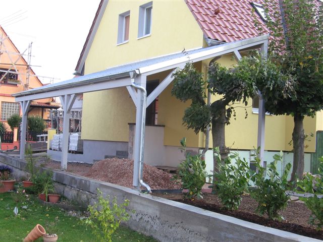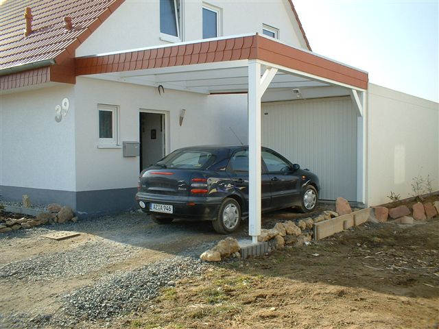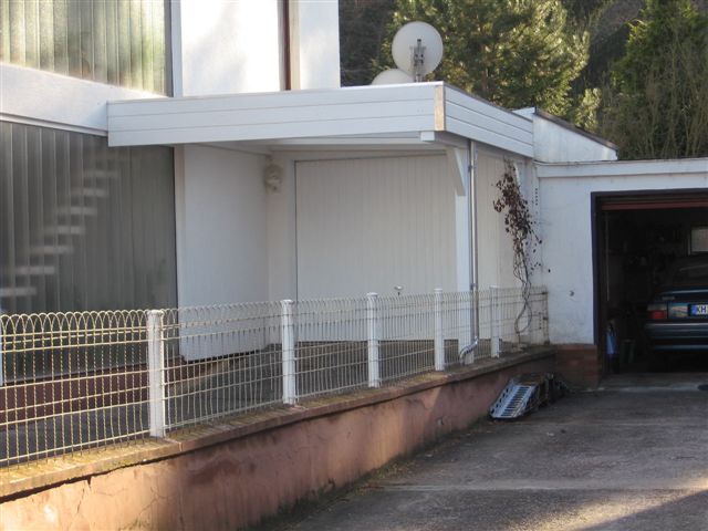 Carport weiß, Eindeckung VSG, Geländer am Kellereingang, Seitenteil